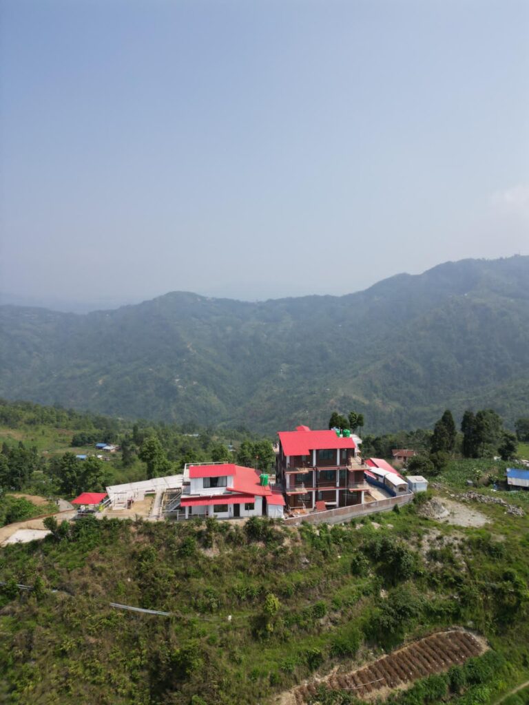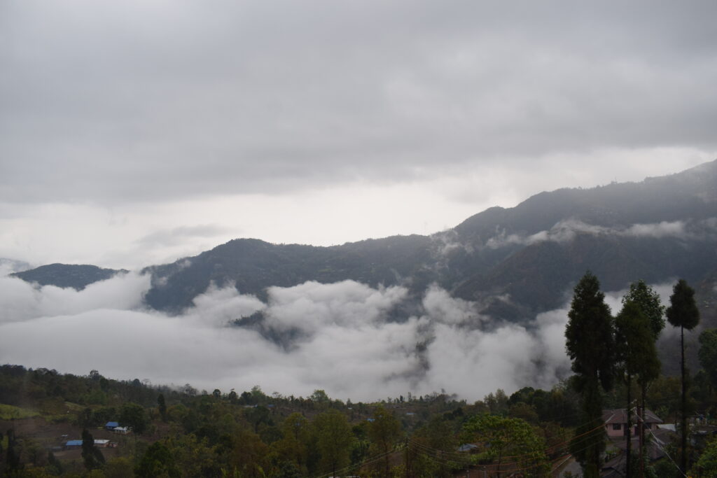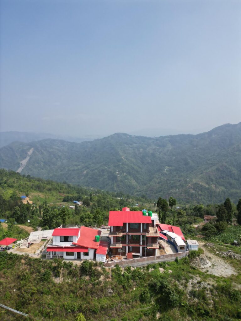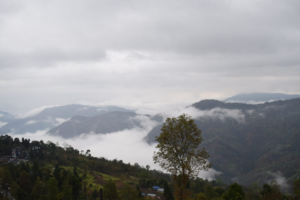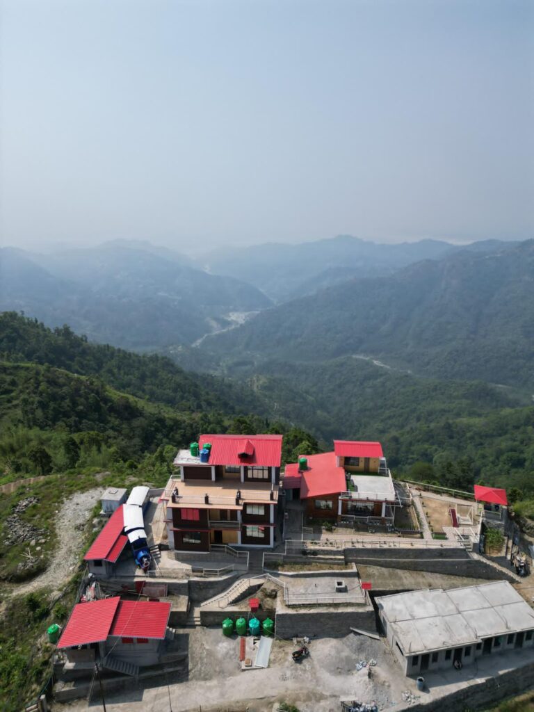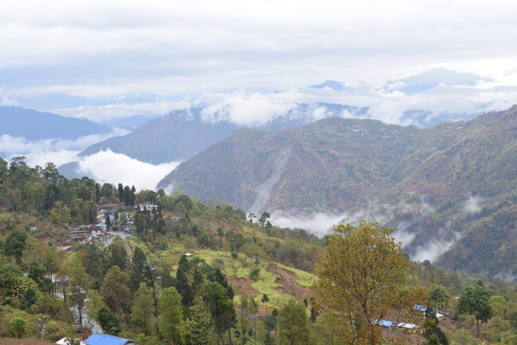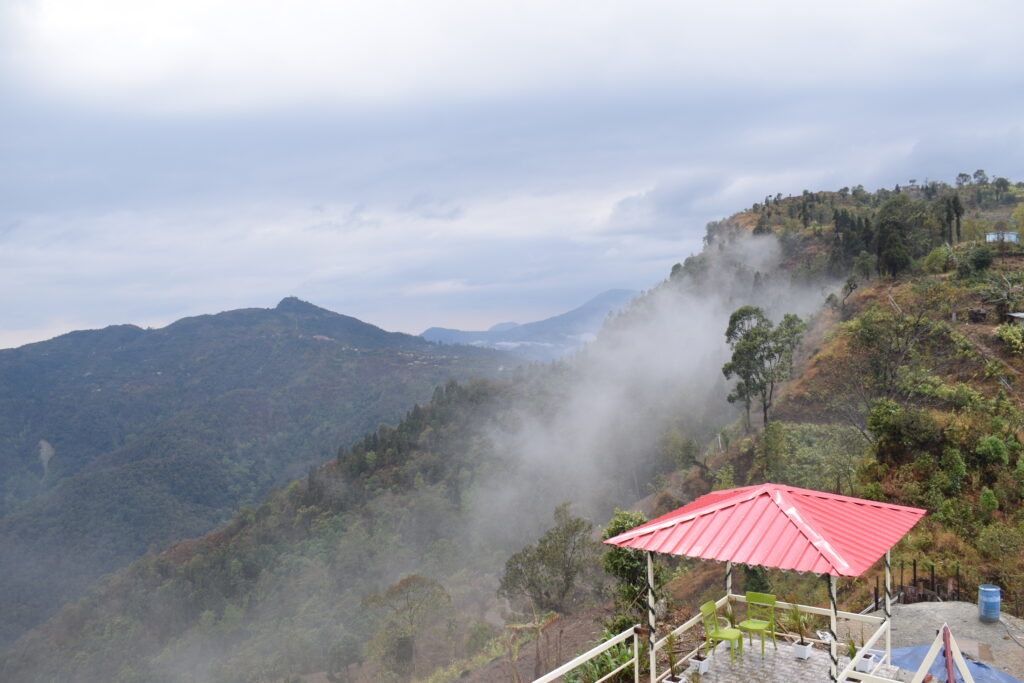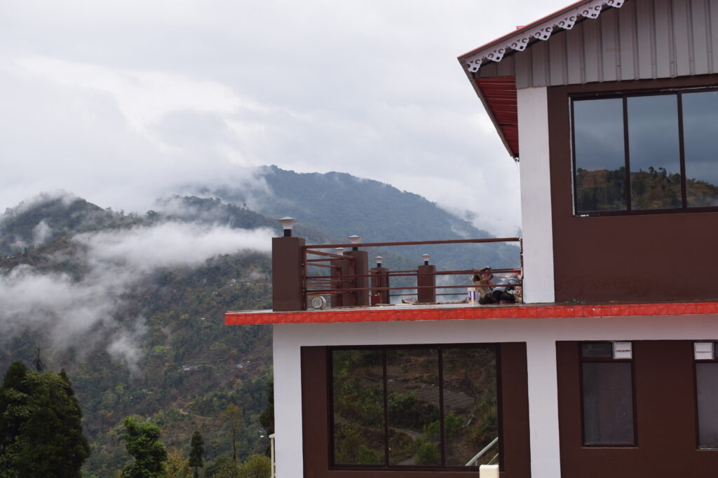 Experience breathtaking mountain views from the terrace at Samthar Greenery Resort, Kalimpong. A perfect spot for relaxation and rejuvenation.